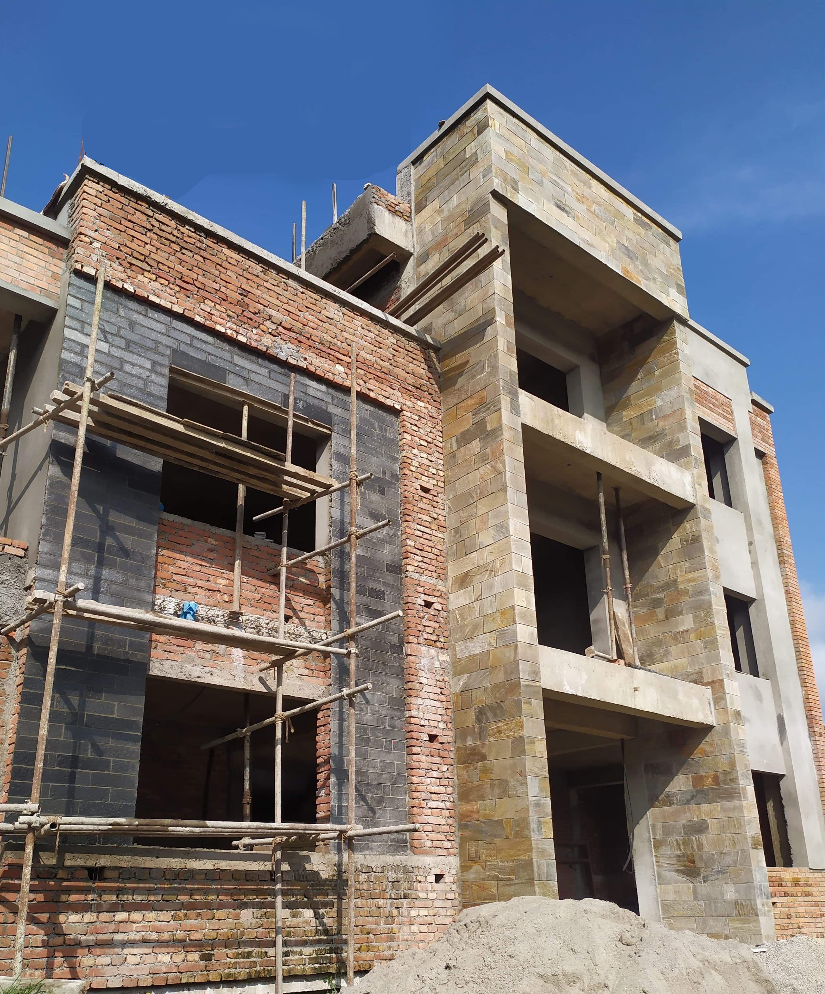 The exterior of the house showcases a blend of Chinese brick, natural stone cladding, and plaster, creating a visually striking facade. The use of these materials not only enhances the durability of the structure but also adds a touch of elegance and modernity. The east-facing orientation ensures that the house is bathed in morning sunlight, creating a bright and inviting atmosphere throughout the day.