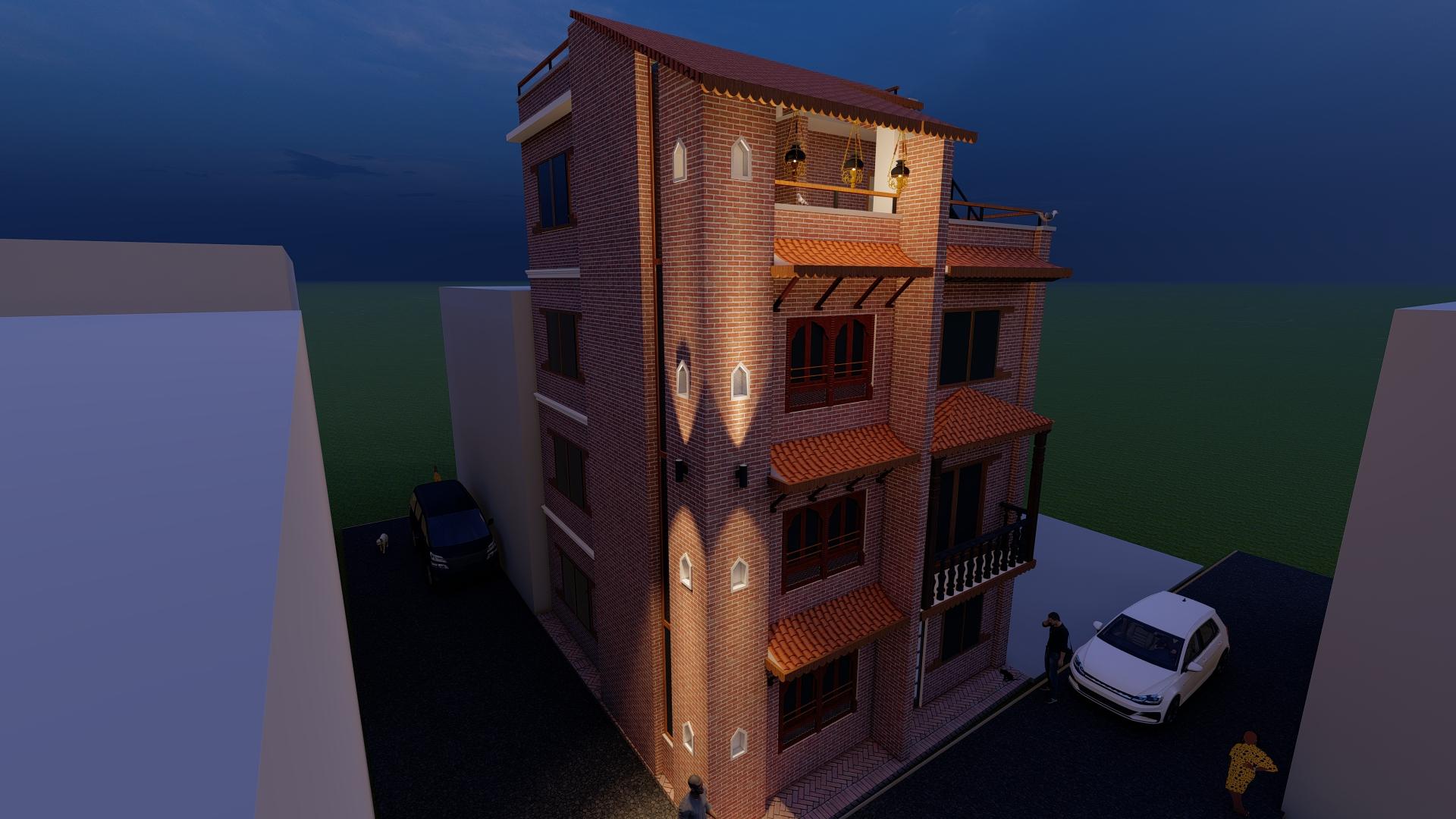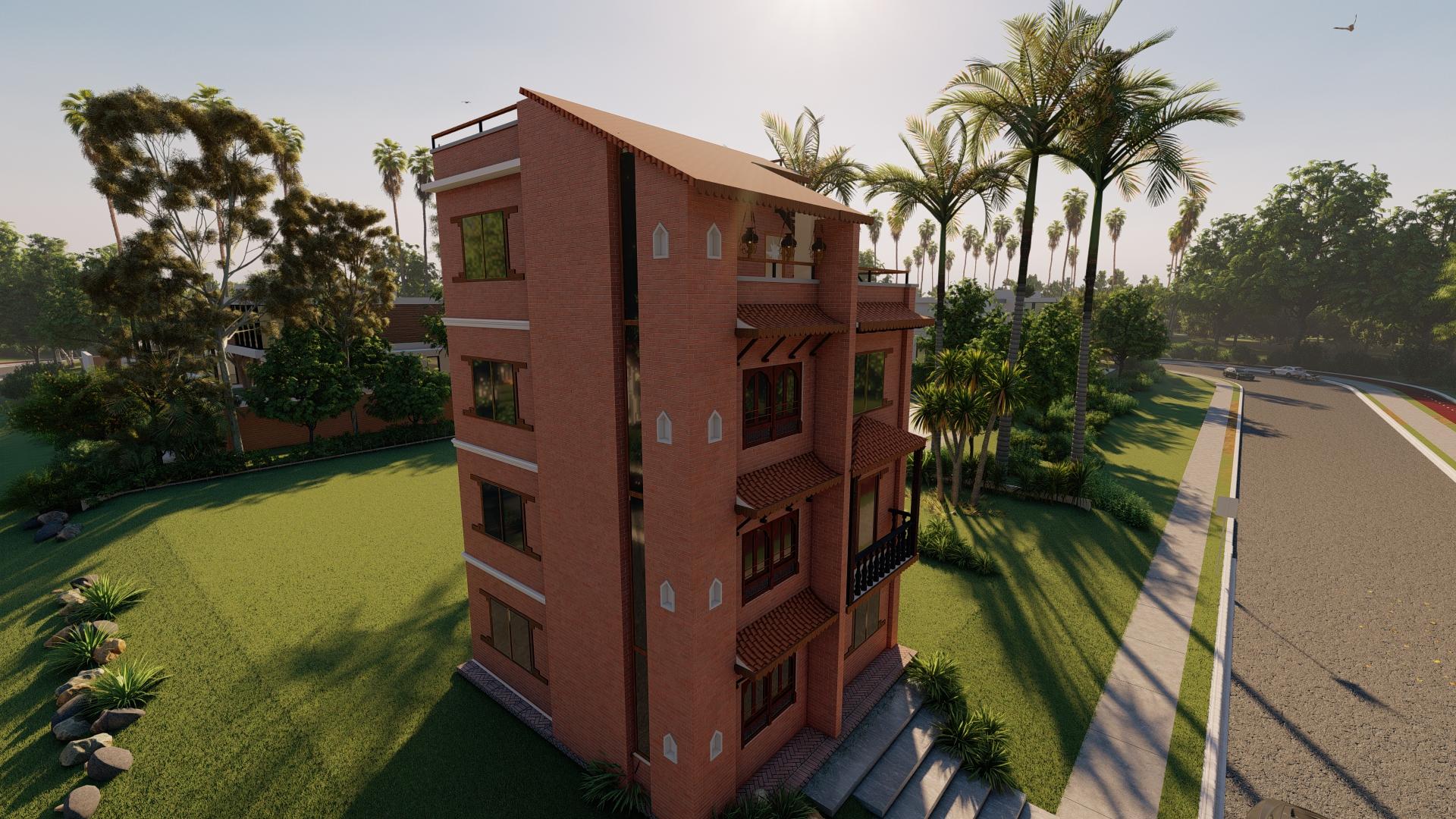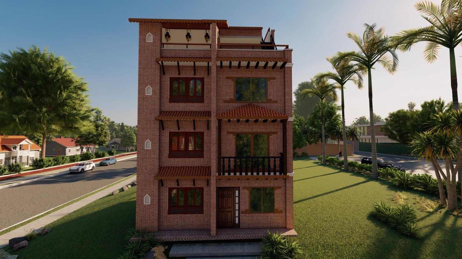 The home designed for Sakhu is a beautiful representation of traditional Newari architecture, harmonizing with the cultural and historical context of its location. Built on a 5 aana plot (approximately 1,710 square feet), this house has a plinth area of 985 square feet and a total built-up area of 2200 square feet. The design adheres to the guidelines set by the municipality, ensuring that the house respects and enhances the traditional Newari aesthetic.