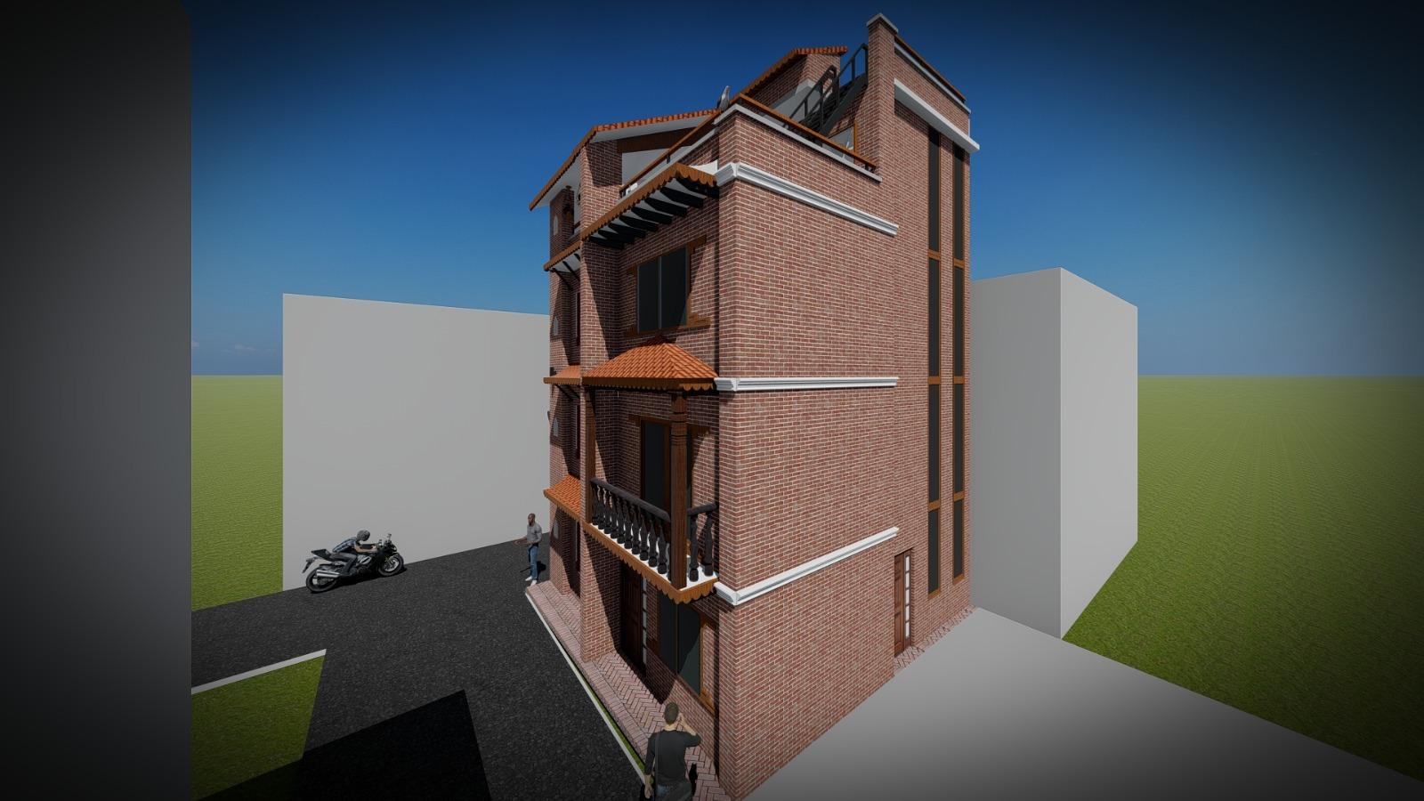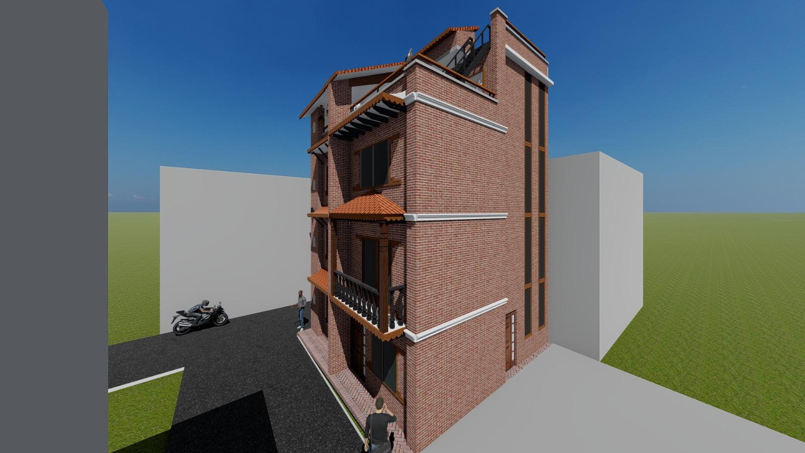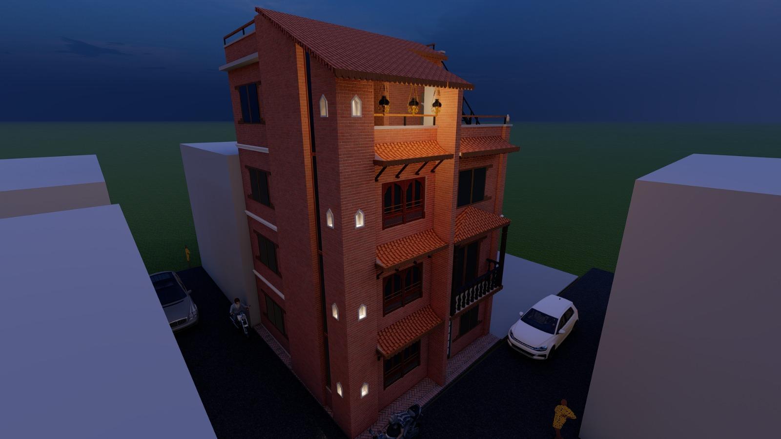 The home designed for Sakhu is a beautiful representation of traditional Newari architecture, harmonizing with the cultural and historical context of its location. Built on a 5 aana plot (approximately 1,710 square feet), this house has a plinth area of 985 square feet and a total built-up area of 2200 square feet. The design adheres to the guidelines set by the municipality, ensuring that the house respects and enhances the traditional Newari aesthetic.
